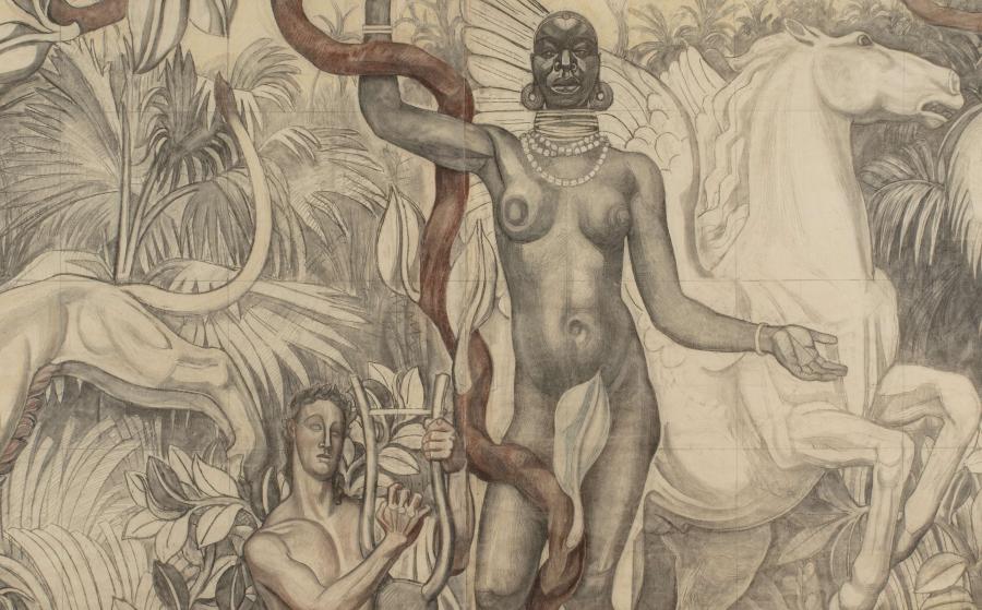 Si les grands décors du peintre forment la partie la plus visible de son œuvre et firent sa célébrité contemporaine, sa production de chevalet de même que son œuvre gravé restent à découvrir. Autour de la donation de Tristan et Iseult (1921) et du dépôt d’Orphée charmant les animaux (1920), consentis par la famille de l’artiste en 2014, l’exposition se propose d’aborder la question de la résurgence du mythe chez l’artiste au cours des premières décennies du XXe siècle. Les séries magistrales que Bouquet consacre à ses figures héroïques de prédilection – de Piétà (1910), encore redevable à l’esthétique de Maurice Denis, jusqu’à l’Orphée se régénérant à la source primitive africaine du palais des Colonies (1931) – sont autant de témoins de ses spéculations plastiques et poétiques ; les nombreux autoportraits – dont un choix sera présenté dans l’exposition – participant à l’affirmation de cette mythologie personnelle.